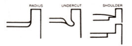 | Inside Corners | Square inside corners produce a low-current density condition that creates a very thin chromium deposit to none at all near the inside corner. | Never machine inside corners square. Instead, adopt the machining details shown below before plating. |